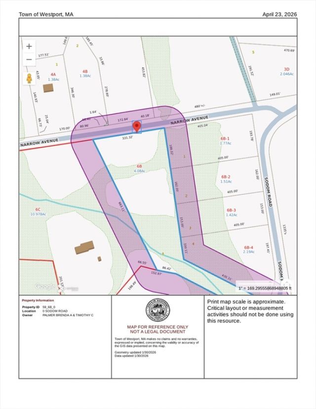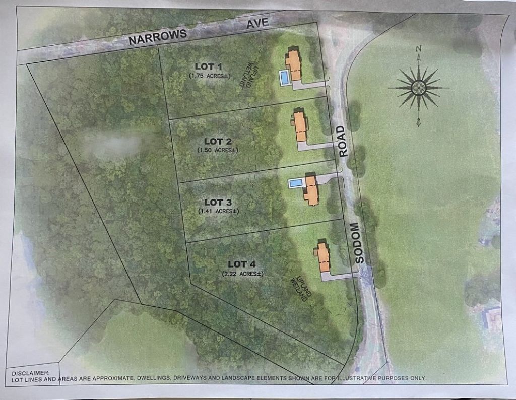 4.08 acre Form- A Lot. Engineer marked the Uplands, Wetlands and Lot Lines.. Great opportunity to own a large piece of land in Westport with many possibilities! . Uplands are at the street along Narrows Ave. Land stretches from Narrows Rd., behind the four new houses on Sodom to Narrows Ave.