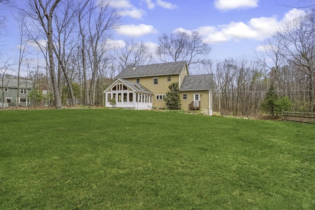 Stunning East-facing Colonial on lush .69-acre cul-de-sac lot in sought-after Charlesview Estates. Exceptional curb appeal w/ perennials & new walkway leads inside gorgeous home offering 4 BR, 2.5 BA, 9' 1st-flr ceilings, 8' 2nd flr & spacious layout. Chefs kitchen features white cabinets, granite counters, vented Wolf gas cooking, pantry & breakfast area open to family room & huge vaulted 3-season sunroom. Elegant dining room & living rooms w/ pocket doors, Brazilian cherry floors & wood burning fireplace adjacent to office/guest room. Huge powder/laundry room w full bath potential. Primary suite includes large walk-in closet & renovated...read more