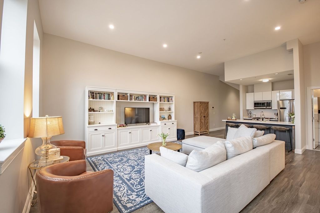 The best of both worlds - modern bright condo with charm and history. Huge windows and soaring 12' ceilings instantly draw you into this stunning residence. Modern kitchen with gas cooking, BOSCH appliances, and quartz countertops. 2 spacious bedrooms with generous closet space. Porcelanosa tiled bathroom. In unit laundry. Enjoy direct views of Butler's Pond and Dorothy Quincy Homestead - this corner unit affords the best views in the building and lends itself to a feeling of privacy. Exceptional morning light. 5 minute walk to Quincy Center T (Red Line & Commuter Rail), restaurants, & shops. Professionally managed elevator building, common...read more