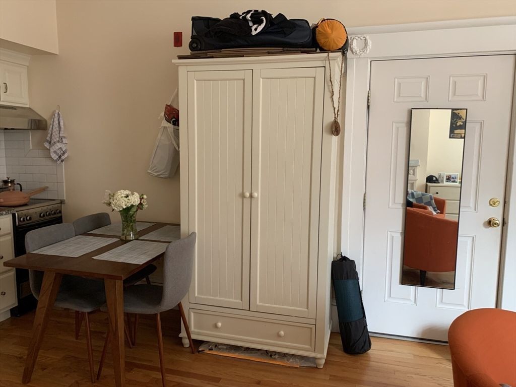 Spacious studio available for a 07/01/2026 move-in! This charming unit features hardwood floors, a renovated kitchen and bathroom, and a mini-split system for efficient heating and cooling. A decorative fireplace and beautiful bay windows add character and natural light to the space.The kitchen is equipped with a mini fridge and electric stove. Card-operated laundry is available in the basement, and heat and hot water are included in the rent.A video tour is attached for your initial review??please email to schedule an in-person showing!