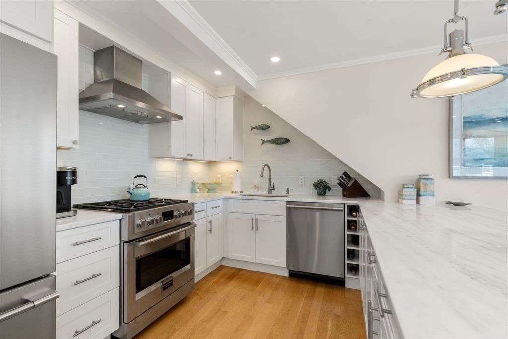 Welcome to this beautifully renovated 3-bedroom, 2 full-bath condo in the heart of downtown Newburyport. This home offers spectacular water views and stunning sunrise vistas. Oversized windows flood the living and dining areas with natural light, complemented by sliding glass doors opening to a private 10 x 10 deck Fully renovated within the last 4 years, the interior features a beautiful kitchen, hardwood floors throughout, and a spacious primary suite with private bath, walk-in closet, and direct access to the deck. One of the homes most exceptional features is the expansive 20 x 20 private rooftop deck with sweeping river views??perfect...read more
