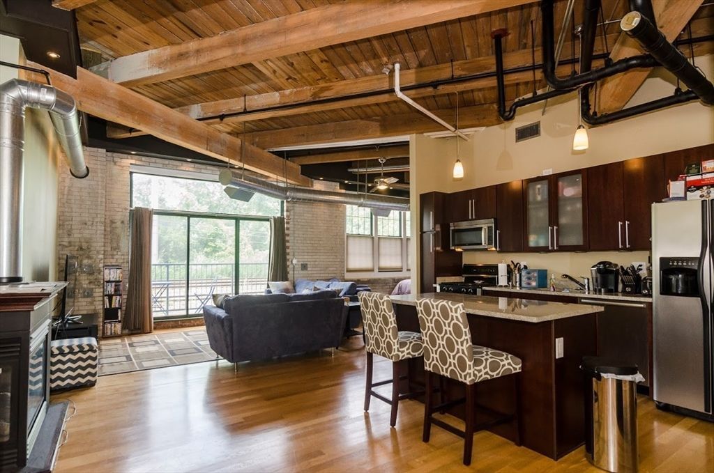 Located in the former home of the famous Charleston Chew factory, history buffs will appreciate this beautiful, modern condo blending the perfect contemporary finishes with warm, inviting touches. Enjoy lofty sand-blasted beamed ceilings, a wide open plan with hardwood flooring, exposed brick walls, beautiful contemporary finishes, and tons of natural light through over-sized windows. Gourmet kitchen with granite counter-tops, stainless steel appliances, and large kitchen island. Living room with gas fireplace and exterior balcony. One large bedroom plus a larger bonus room which could be a study, nursery, office, or second bedroom. Central...read more