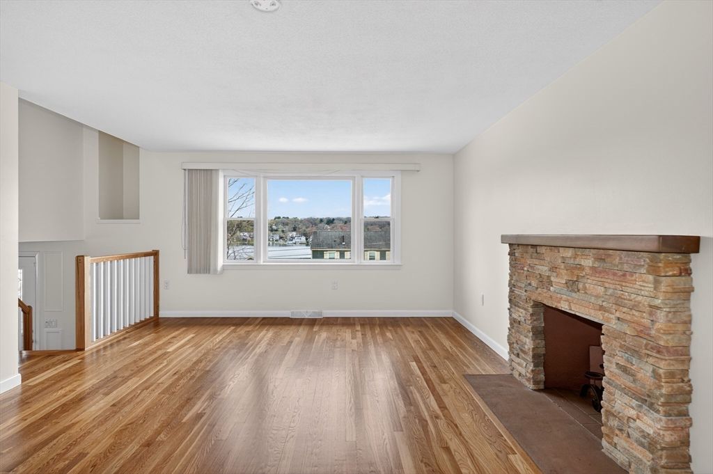 Move-in ready multi-level home with gorgeous views of Fort Meadow. The bright living room features a picture window with a stunning view. Freshly painted throughout with recently refinished hardwood floors. Off the living room is an insulated 450 square foot three season porch with a year-old mini split heating and cooling system. The first level kitchen has plenty of cabinet space and gas range as well as dining room with hardwood floors. The half bath has just been renovated. The top level has 3 bedrooms with hardwood floors and upgraded full bath. Central Air is one year old. Bonus room can be used as an office or den. Centennial Beach...read more