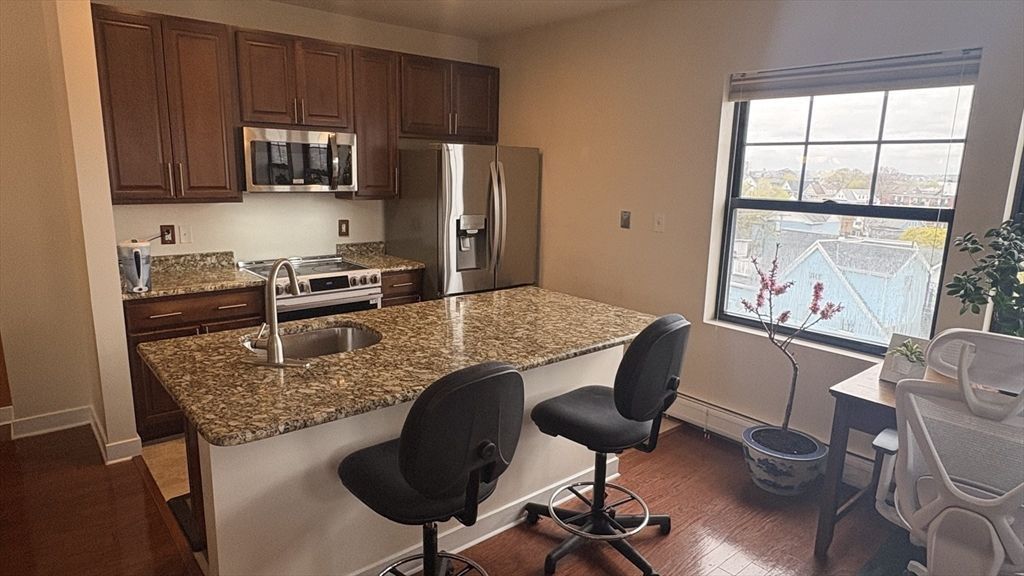 Available May 1st. Bright and spacious penthouse corner unit at Belmont Lofts featuring 12 ceilings, hardwood floors, and a wall of windows with expansive city views. Open-concept layout with modern kitchen offering granite countertops and large island.Primary suite includes private bath and custom closet, plus additional walk-in closet suitable for office use. Second bedroom with French doors.Unit can be rented furnished or unfurnished, with all furniture shown in photos available upon request.In-unit washer/dryer, central A/C, extra storage, and 2 deeded tandem parking spaces. Conveniently located near downtown Malden with easy access to...read more