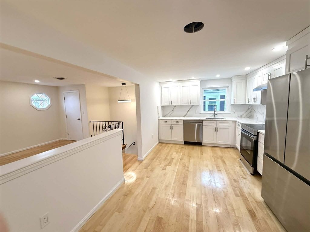 Recently renovated 3 bed, 1 bath comprising the entire second floor of a 2-family home. Tenants can enjoy direct/private unit entry, central AC / heating and an entire driveway exclusive to the unit (for 2-3 cars). Both the eat-in kitchen and adjacent full bath have been completely redone, with stainless steel appliances, quartz countertops and new shaker cabinetry in the kitchen, as well as all new tile, a new vanity/mirror and in-unit laundry in the bathroom. Refinished hardwood floors, new windows and recessed lighting are apparent throughout, and the open concept layout is optimal for lounging, hosting or working from home. No one has...read more